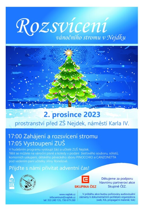 2.12.2023 v 17:00 hodin, prostranství před ZŠ Nejdek, náměstí Karla IV.